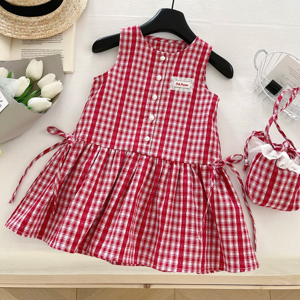 - [수입] 레드체크가방원피스세트 (바로배송)