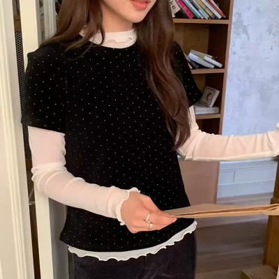 - on.[T363]도트벨벳반팔티셔츠