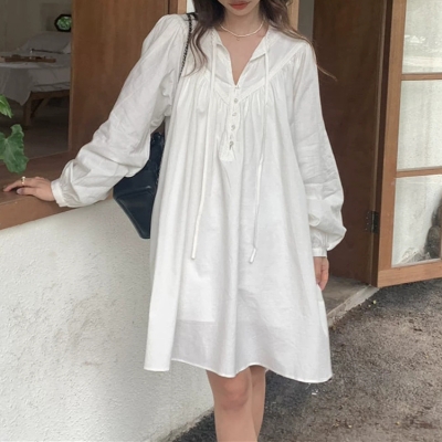 - on.[OPS1496]레이스셔링루즈핏원피스