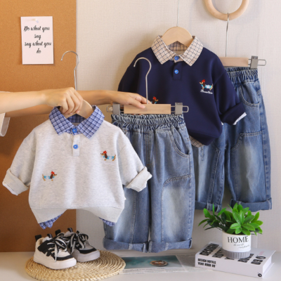 체크퍼피 찢청바지 셋 ★