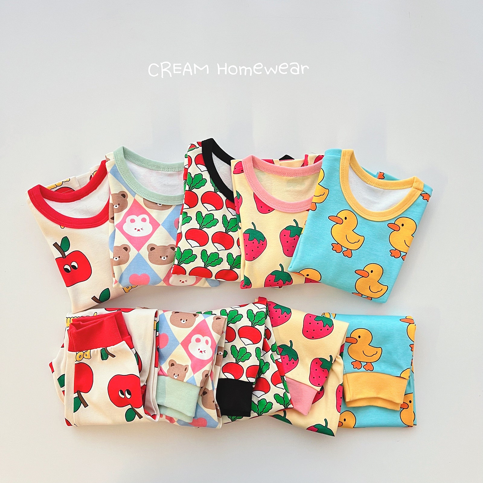 pomme사과, 레몬바탕핑크딸기,