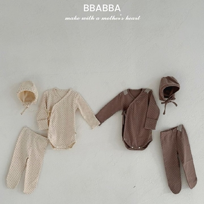 빠빠.배냇도트세트(슈트+레깅스+보넷)