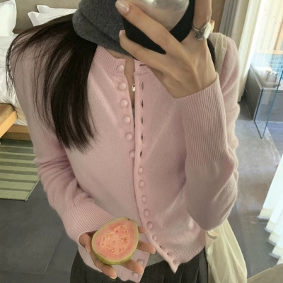 on.[CD618]콩단추라운드넥가디건